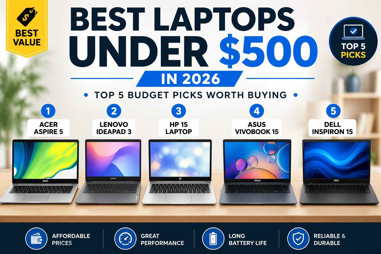 In this guide, we’ve selected the 5 best laptops under $500 in 2026 that offer the perfect balance of performance, battery life, and value.